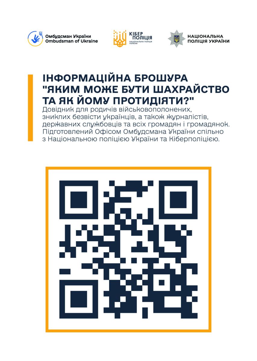 Для цього створена спеціальна тематична брошура — «Яким може бути шахрайство та як йому протидіяти?». Вона містить алгоритм дій захисту для рідних полонених і зниклих безвісти українців, а також інформацію для журналістів та державних службовців.