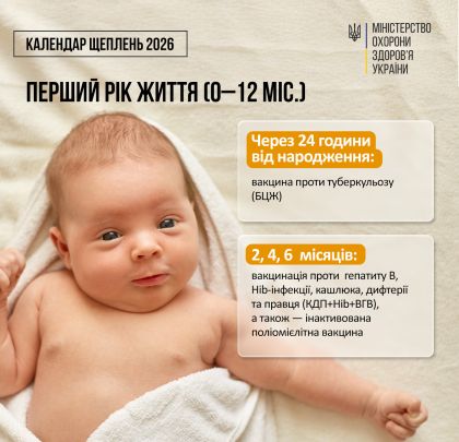 Через 24 години після народження і до виписки з пологового стаціонару — щеплення проти туберкульозу (або якомога раніше, якщо щеплення у пологовому відділенні не проводилося). Відтак, мама з дитиною зможуть раніше виписатися з пологового і знизити ризик інфікуватися внутрішньолікарняними інфекціями.