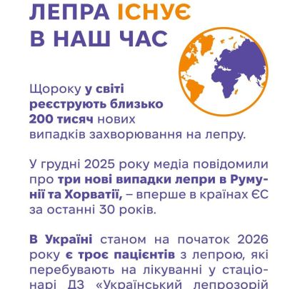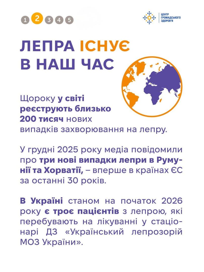 В останню неділю січня відзначають Всесвітній день допомоги хворим на лепру. Це хронічне інфекційне захворювання, відоме також як проказа або хвороба Гансена.