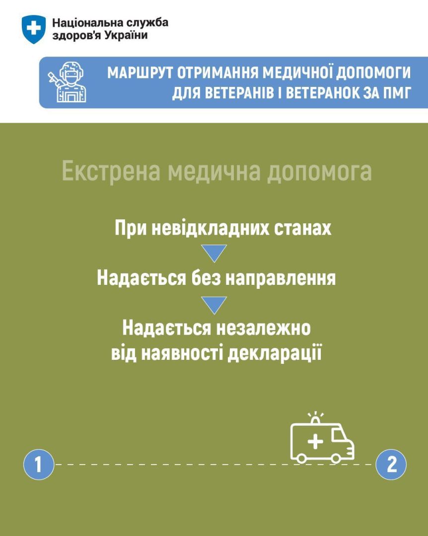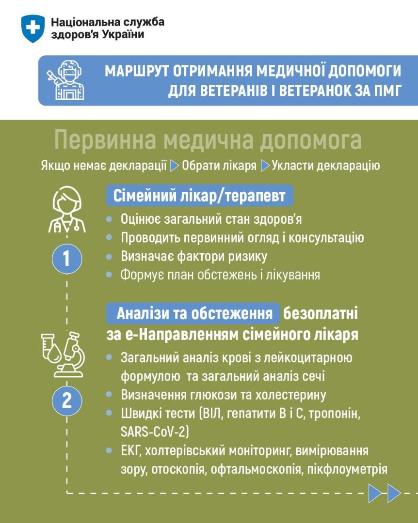 Нагадуємо ветеранам і ветеранкам, з яких кроків варто розпочати свій маршрут у межах Програми медичних гарантій та які медичні послуги гарантовано надаються безоплатно. Деталі в інфографіці нижче![]()