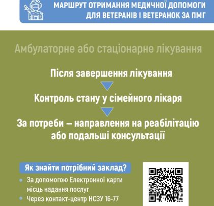 Вже у наступних матеріалах ми детально розбиратимемо маршрути допомоги за конкретними діагнозами, а також окремі програми, що реалізуються для ветеранів і ветеранок.